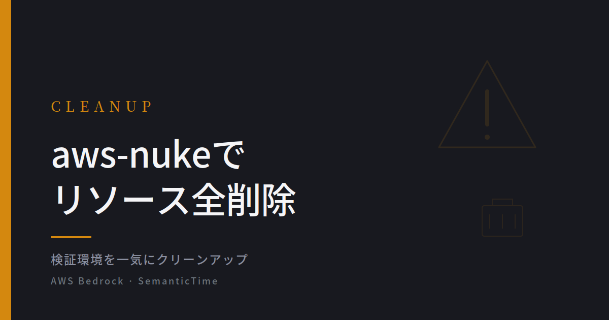 aws-nukeはAWSアカウントから全てのリソースを削除する有志によって作られたツールです。